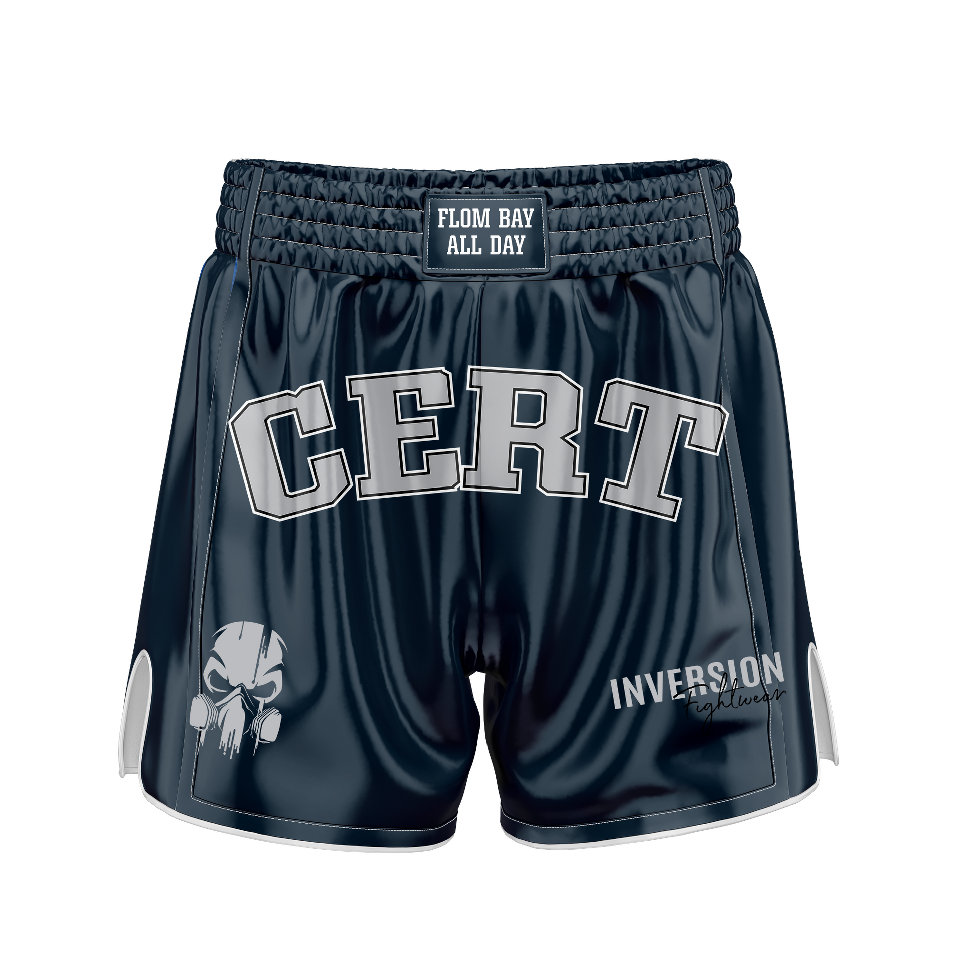 The CERT x Inversion Fightwear Navy Fight Shorts are a limited-run collaboration designed for grapplers, strikers, and MMA athletes who value performance and style. Built from lightweight yet durable fabric, these shorts give you full freedom of movement while holding up to the toughest rolls.